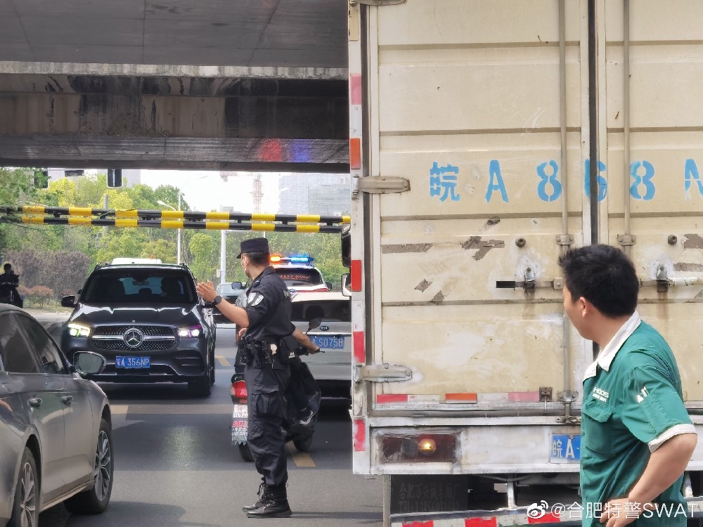 4月12日14时许,合肥市大房郢路与临泉路交口附近,路口拥堵严重。合肥市公安局特警支队民警巡逻至此,现场了解到,系一货车司机判断错误,导致车辆与下穿桥限高架发生剐蹭,无法继续前进,后方堆积大量车辆进退两难。民警立即对现场交通进行疏导,同时指挥货车司机倒车退